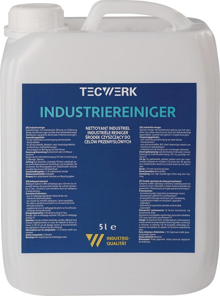 Spezialreiniger für Kunststoffe, Edelstahl, alkalibeständige Metalle an Nutzfahrzeugen, Maschinen usw. · dringt in verwitterte, offenporige Materialien ein und löst alte Verschmutzungen · reinigt Lkw-Planen, Kunststoffmöbel, Wohnwagen, Zelte, Gartenmöbel uvm. · für die maschinelle Grundreinigung stark belasteter PVC-Böden · für Hochdruckreiniger geeignet · Anwendung / Dosierung: Je nach Verschmutzungsgrad 4-20 %ig (320-1600 ml/8 Liter kaltem Wasser) verdünnen. Auf eloxierten Flächen nur stark verdünnt anwenden und vorher einen Materialversuch durchführen. Die Wirkungsweise von Ölabscheidern wird bei korrekter Dosierung nicht beeinflusst.