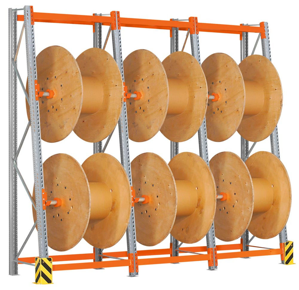 Kabeltrommelregal, Anbaufeld, Fachlast 750 kg, Feldlast 3000 kg, Feldbreite 1300 mm, Rahmenhöhe 2500 mm, Tiefe u./o. 1000/650 mm EP555874