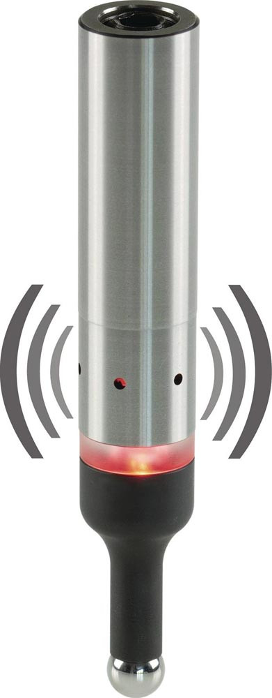 zum exakten Ermitteln von Werkstücknullpunkten und Bohrungsmittelpunkten auf Fräsmaschinen, Bohrmaschinen, Bearbeitungszentren usw. · bei Kontakt, der in den Achsen X und Y ausfedernden Tastkugel mit dem Werkstück, schließt der Stromkreis und die rundumleuchtende Anzeige leuchtet auf · die 3D-Ausführung verfügt zusätzlich über einen Sicherheitsfederweg von 2 mm in der Z-Achse · die Bezugslänge muss zuvor in einem Voreinstellgerät vermessen und berücksichtigt werden · Genauigkeit ± 0,01 mm · Tastkugel-Ø 10 mm