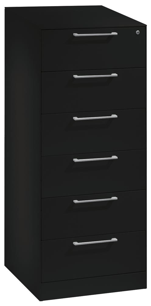 Karteischrank, BxTxH 440x600x998 mm, DIN A6, zweibahnig, 6 Schubladen, Bügelgriff, RAL 7021 schwarzgrau EP518498