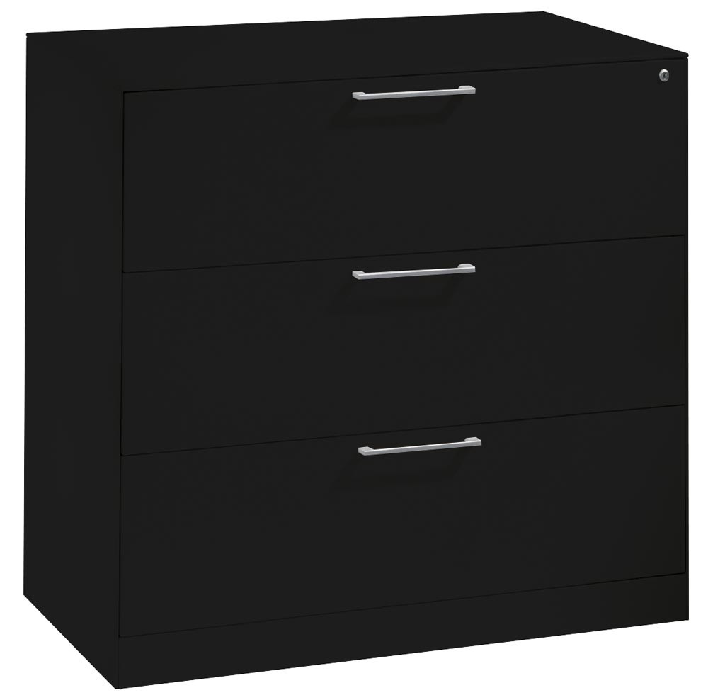 Karteischrank, BxTxH 800x600x698 mm, DIN A5, dreibahnig, 3 Schubladen, Bügelgriff, RAL 7021 schwarzgrau