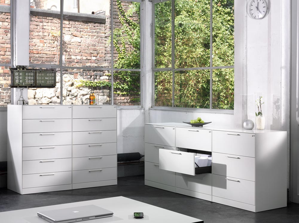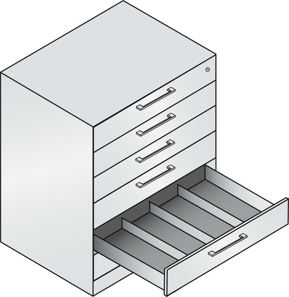 ∙ Robuste und langlebige Stahlkonstruktion mit hochwertiger Einbrennlackierung ∙ Schubladen auf 100 % ausziehbaren Kugelrollen-Teleskopführungen ∙ Schubladenfronten mit matt-verchromtem Bügelgriff ∙ Zentralverschluss mit Auszugsperre ∙ Austauschbarer Wechselkern, inkl. 2 Schlüsseln ∙ Inkl. selbstklebenden Kunststoff-Etikettenrahmen