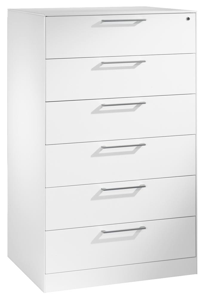 ∙ Robuste und langlebige Stahlkonstruktion mit hochwertiger Einbrennlackierung ∙ Schubladen auf 100 % ausziehbaren Kugelrollen-Teleskopführungen ∙ Schubladenfronten mit matt-verchromtem Bügelgriff ∙ Zentralverschluss mit Auszugsperre ∙ Austauschbarer Wechselkern, inkl. 2 Schlüsseln ∙ Inkl. selbstklebenden Kunststoff-Etikettenrahmen