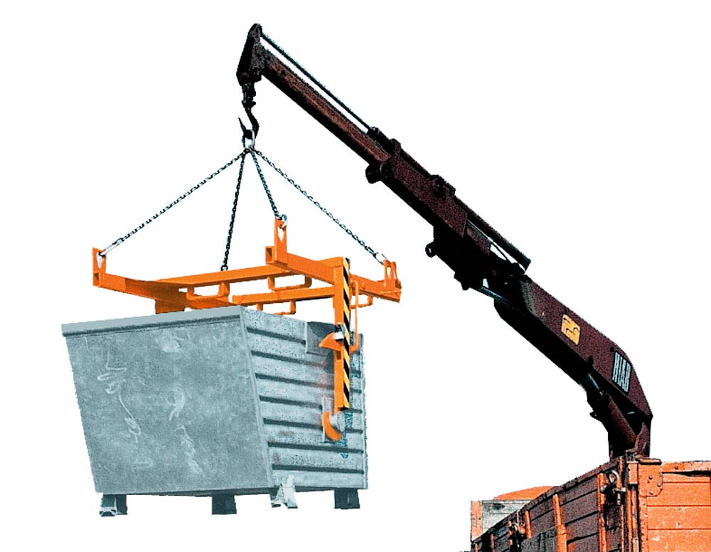 Kipptraverse, für Kran- und Staplerbetrieb, für 0,9 cbm, lackiert RAL 2000 gelborange