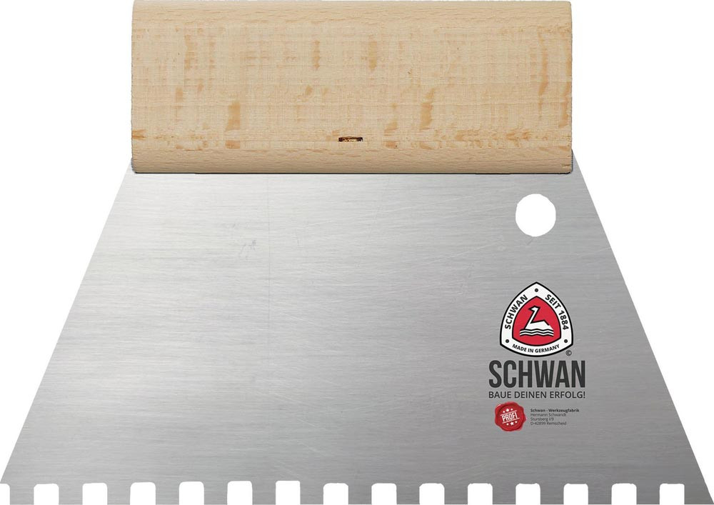 Kleberspachtel Länge 180 mm Breite 180 mm Zahnung C2 Kastenzahnung 6x6x6 mm gehärteter Stahl Holzleiste
