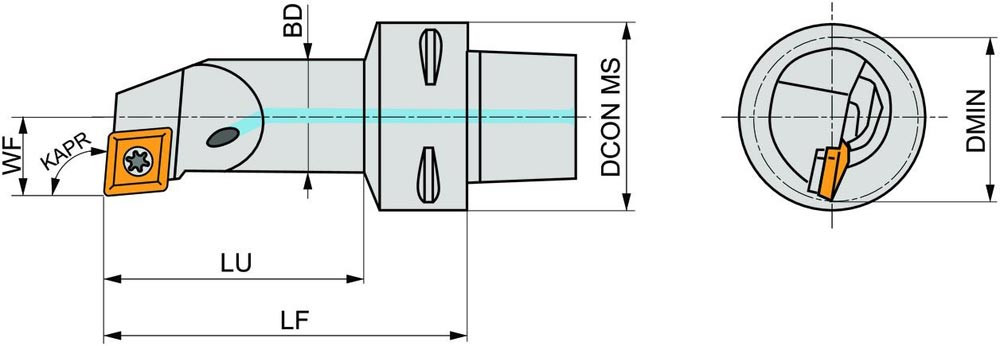 Klemmhalter ISO C3-SCLCR-13075-09 D.32mm m. Polygonkupplung Rechtslauf E6503655