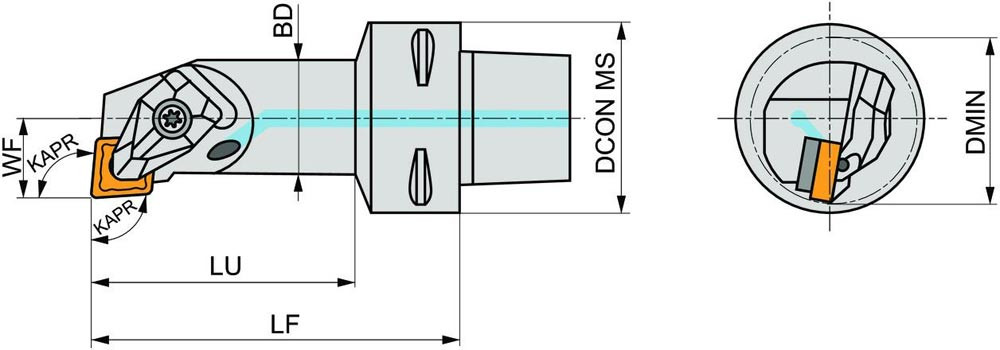 Klemmhalter ISO C4-DCLNR-17090-12 D.40mm m. Polygonkupplung Rechtslauf E6502197