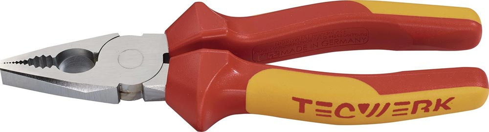 VDE-isoliert bis 1000 V · gefertigt gem. DIN EN/IEC 60900, stückgeprüft · Greifzonen für Flach- und Rundmaterial · lange Schneiden für dickere Kabel · Schneiden zusätzlich induktiv gehärtet, Schneidenhärte ca. 60 HRC · Spezial-Werkzeugstahl, geschmiedet, ölgehärtet und angelassen