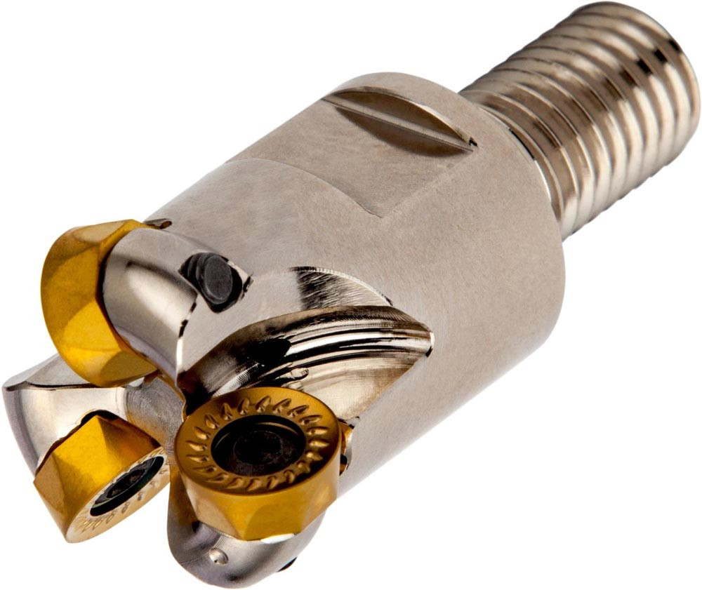 Kopier-Planfräser mit doppelt negativer Geometrie zum spannen von 3 Stück RCMT 10T3MO.. einseitigen Wendeschneidplatten · Schnittdurchmesser 25mm mit M12 Gewindeschaft für modulare Standardhalter · 32mm Überstandslänge · Kühlkanalbohrung zum Planfräsen · Kopierfräsen · Rampen · Helikalen Fräsen und progressiven Eintauchen mit einer maximalen Schnitttiefe von 5.0mm