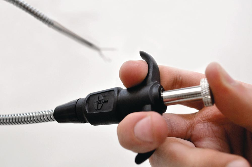 mit flexibler Welle und 3 Greifbacken, die durch Federdruck automatisch festhalten · Kunststoffgriff · die Verlockung beträgt bei allen Größen 70 mm