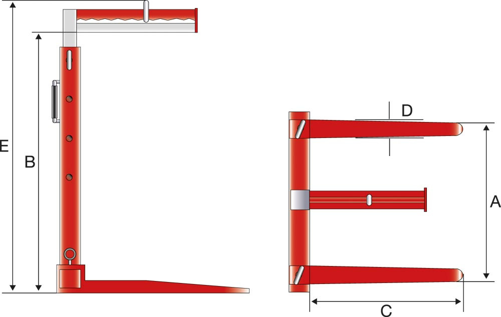 · Alle Modelle entsprechen der UVV, den einschlägigen Normen und EG-Richtlinien · Gewichtsausgleich erfolgt automatisch · Verstellbare Gabelzinken und Höhenverstellung · Leichte Verstellbarkeit der Gabelzinken auf alle Palettengrößen · Durch Zusammenschieben der Gabeln auch zum Transport von Ringen und Coils geeignet · 4 m lange Sicherungskette zur Ladungssicherung gehört zum Lieferumfang