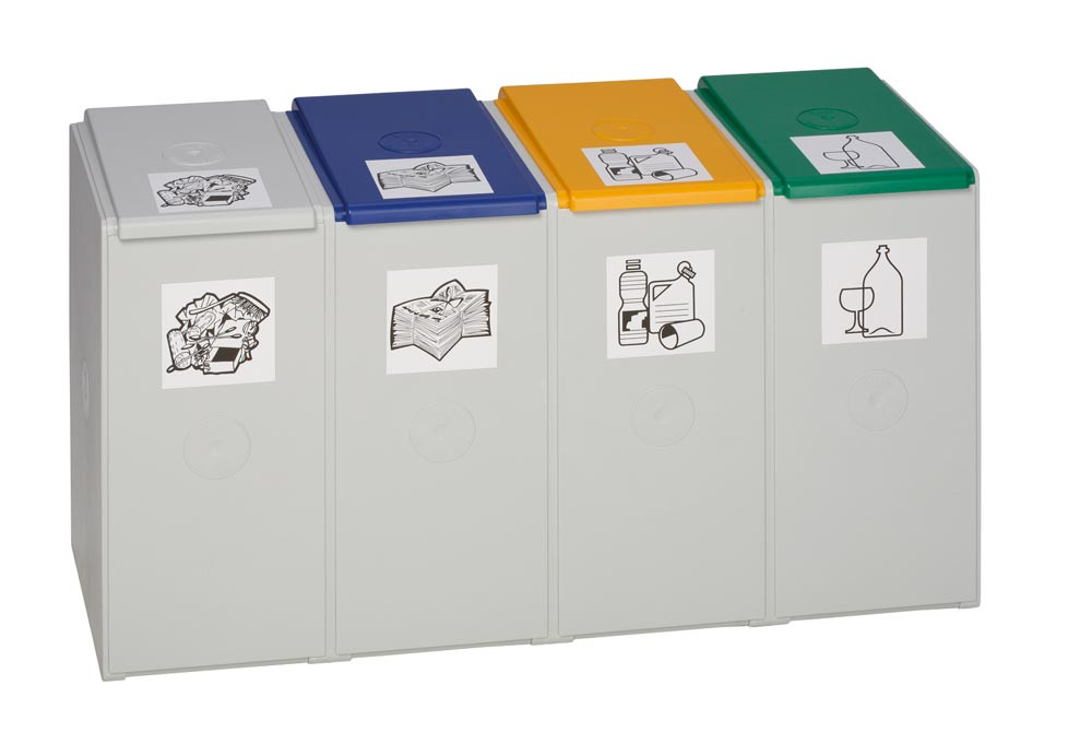 ∙ International mehrfach ausgezeichnet ∙ Modulares Container-System ∙ Korpus aus schlagzähem Polystyrol ∙ Farbe ähnlich RAL 7035 lichtgrau ∙ Zum Lieferumfang gehört ein Aufklebersatz mit 7 verschiedenen Piktogrammen in zweifacher Ausfertigung und praktische Sackklemmen zur Befestigung der Abfallsäcke ∙ Lieferung ohne Deckel