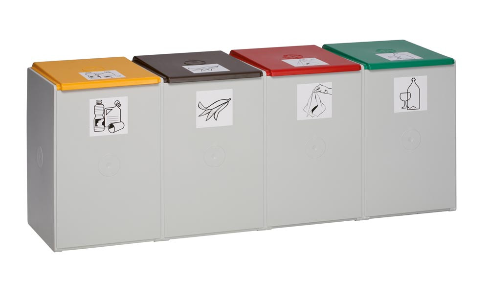 ∙ International mehrfach ausgezeichnet ∙ Modulares Container-System ∙ Korpus aus schlagzähem Polystyrol ∙ Farbe ähnlich RAL 7035 lichtgrau ∙ Zum Lieferumfang gehört ein Aufklebersatz mit 7 verschiedenen Piktogrammen in zweifacher Ausfertigung und praktische Sackklemmen zur Befestigung der Abfallsäcke ∙ Lieferung ohne Deckel