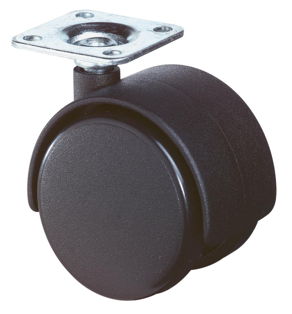 Kunststoff-Doppelrolle m. Festst., schwarz, Durchm. 50 mm, Traglast 40 kg, Anschraubplatte, für weiche Böden, VE 8 Stück EP529244