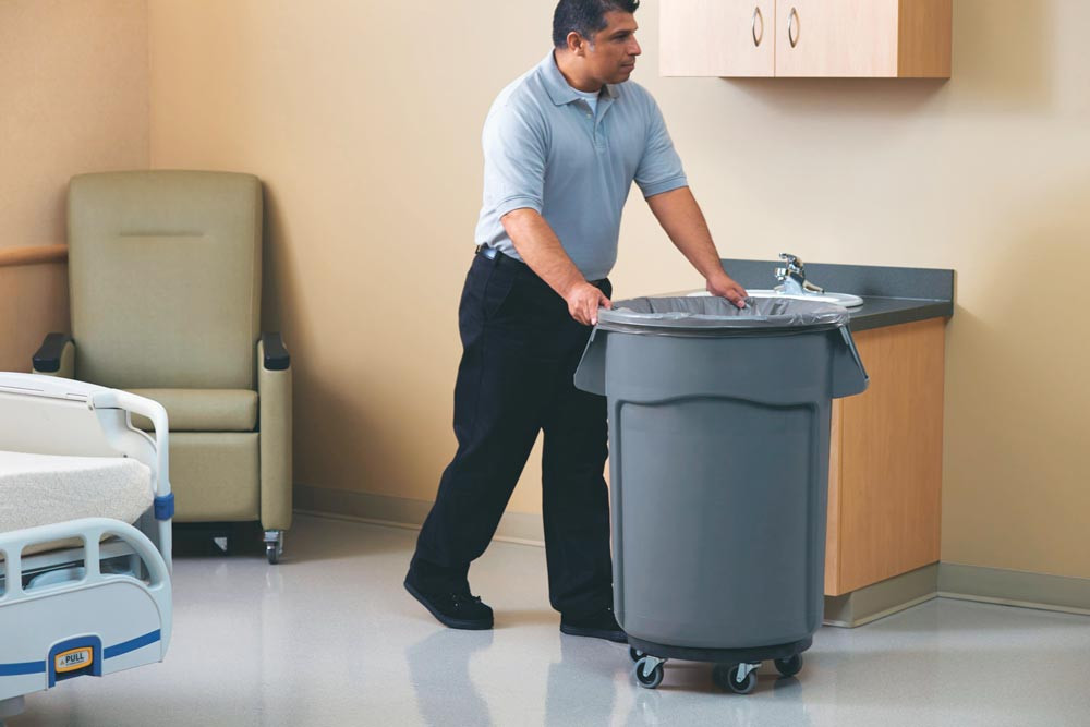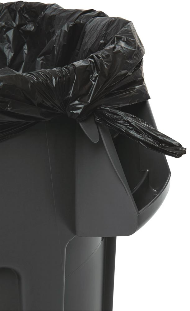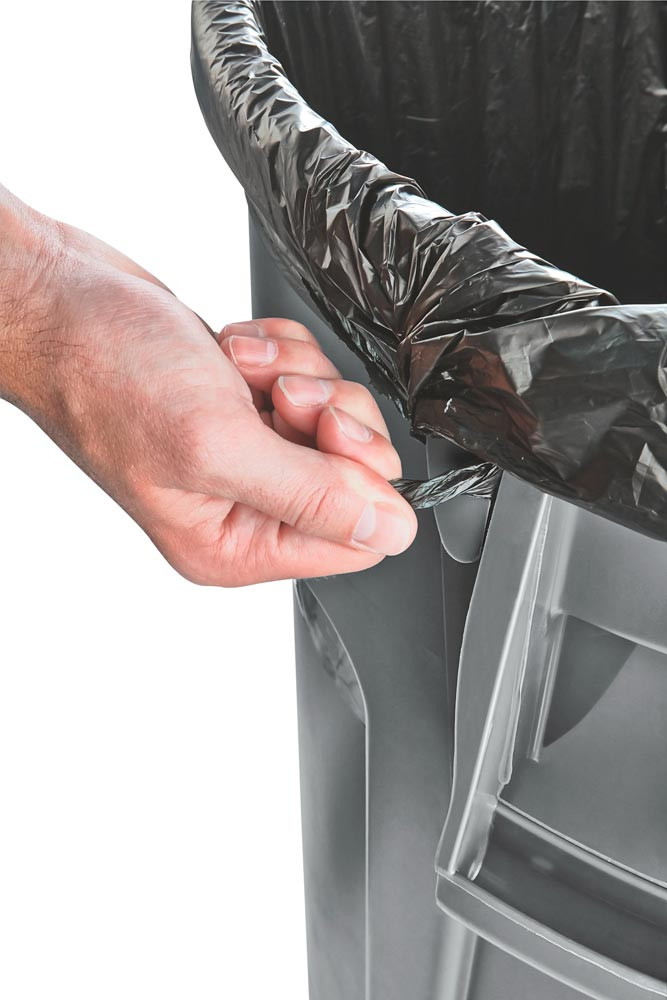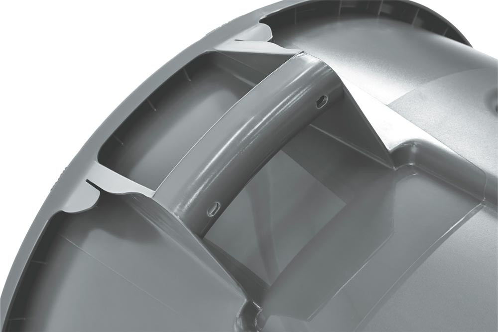 · Aus Polyethylen, eine komplette Palette vielseitig einsetzbarer, robuster Kunststoff-Rundbehälter · Stoß- und kratzfest, kälte- und formbeständig, für Temperaturbereiche von -29°C bis +60°C geeignet ∙ Zusätzliche Festigkeit und Strapazierfähigkeit durch Randverstärkung · Doppelrippenboden für erhöhte Stabilität und Ziehfestigkeit · Starke, integrierte Griffe für leichtes, rutschfestes Anheben · Im Leerzustand platzsparend ineinander stapelbar · Mit Müllsackklemmen · Lüftungskanäle für eine 50 % leichtere Müllsackentnahme