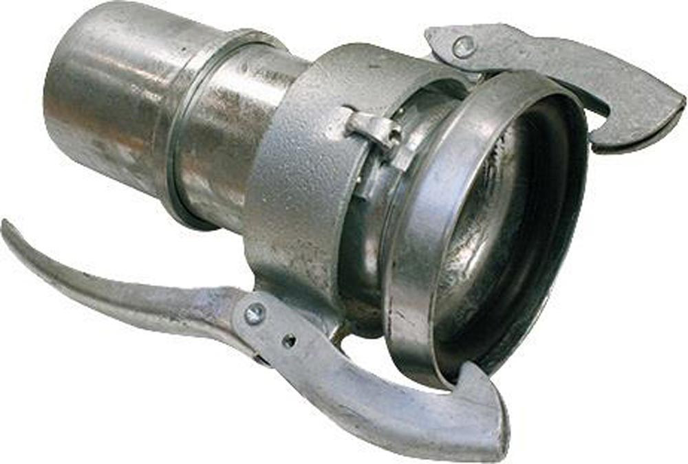 Mutterteil für Schaleneinband · Typ CK 78 mit Schlauchstutzen und Sicherungsbund · Hebelverschlussring · Becher und Dichtung. Mit fest montiertem Hebel. · Betriebsdruck: 10bar · Farbe Dichtung: Schwarz · Für Schlauch-Innendurchmesser: 102mm · Gewicht pro Einheit: 5,644kg · Werkstoff: Feuerverzinkter Stahl · Werkstoff Dichtung: SBR