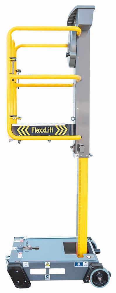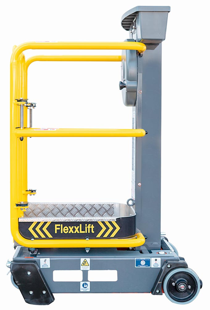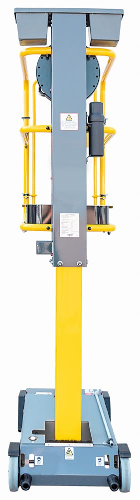 · Manuell betriebener Lift mit Ein-Hand-Bedienung · Hubmechanismus mit Gasdruckfeder · Für Arbeitshöhen bis maximal 4,20 m · Nutzung im Innenbereich · Einfacher Ein- und Ausstieg · Automatische Bremsvorrichtung beim Besteigen oder Rollen mit Feststeller · Ablageschale für Werkzeug und Material · Transport mit dem Gabelstapler möglich · Geringe Betriebskosten · Maximale Belastung: 150 kg