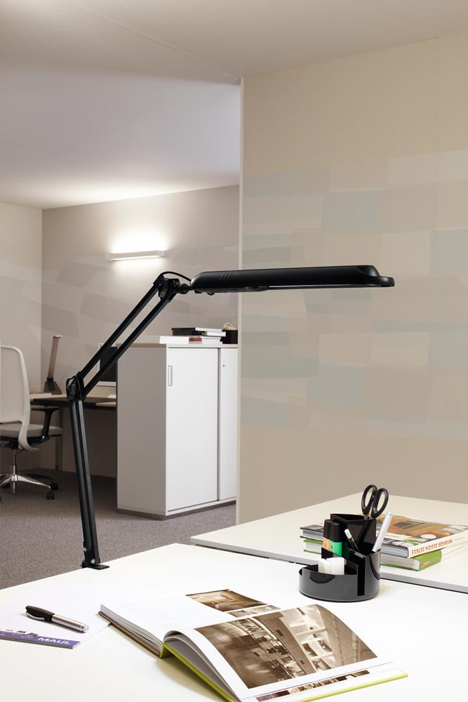 Metall/Kunststoff ∙ mit Tischklemme oder Standfuß ∙ Leuchtenkopf und Arm vielseitig verstellbar ∙ Armlänge unten 330 mm - oben 340 mm - Höhe max. 410 mm (mit Standfuß), Höhe max. 380 mm (mit Tischklemme) ∙ Betriebsspannung 220-240 V ∙ Lichtfarbe 6.500 Kelvin - tageslichtweiß ∙ Lichtstrom 800 Lumen ∙ Lebensdauer 10.000 Stunden ∙ gewichteter Energieverbrauch 6 kWh/1000 h ∙ Effizienzklasse D (Spektrum A bis G)
