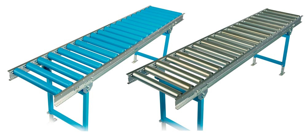 Zum Transport von Stückgütern durch Gefälle. Neigung ca. 2-5 % je nach Beschaffenheit und Gewicht des Fördergutes. Das Fördergut sollte mindestens auf 3 Tragrollen aufliegen. Der Boden des Fördergutes kann Längsstege oder auch eine umlaufende Ringleiste aufweisen.