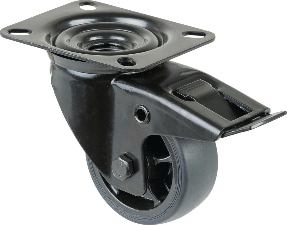 Lenkrolle Rad-Ø 80 mm Tragfähigkeit 100 kg mit Feststeller Gummi 104x80mm schwarz EP560730