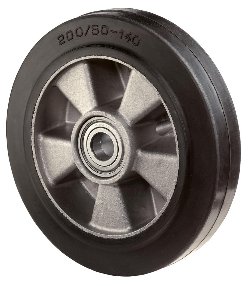 Elastik-Vollgummi · mit Kugellager · Alu-Spritzgussfelge · für hohe Belastbarkeit · robust und abriebfest · geräuscharmer Lauf
