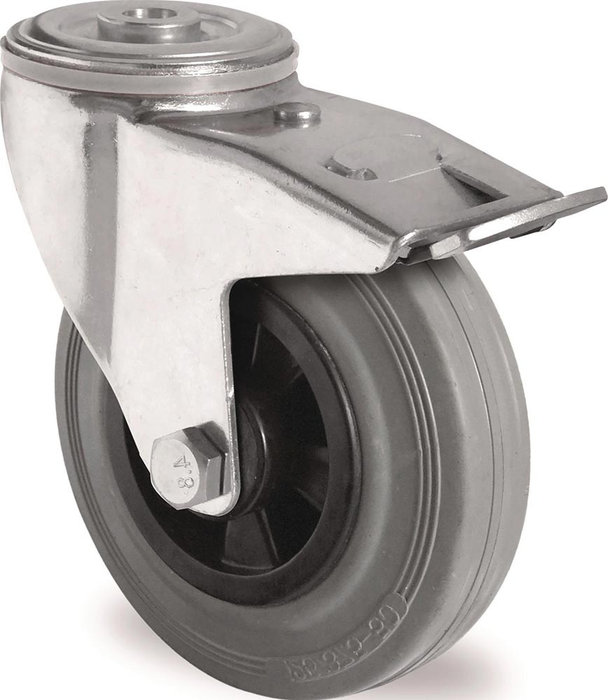 Lenkrolle mit Totalfeststeller Rad-Ø 80 mm Tragfähigkeit 70 kg mit Rückenloch Rollenlager Vollgummi grau E6491649