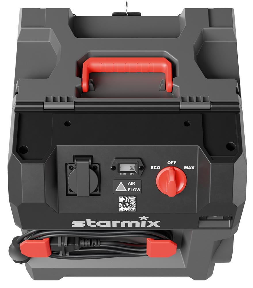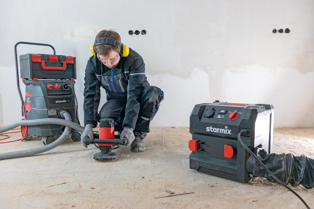 Filtert effektiv Staub aus der eingesaugten Luft und gibt sie gereinigt an die Umgebung zurück ∙ Trägt aktiv zur Vermeidung und Reduzierung von Schäden durch Staub gemäß TRGS 504 bei ∙ Hervorragend geeignet für herausfordernde Baustoffe wie einatembare und lungengängige Stäube, z. B. Beton-, Gips- und Hartholzstäube ∙ Werkzeugloser Filterwechsel ∙ Betriebsstundenzähler und Anzeige bei Volumenstromunterschreitung ∙ Anschluss für Abluft- und Zuluftschlauch ∙ 2-stufiges Filtersystem – HEPA Filter H13 und Vorfilter ∙ Steckdose zum Anschließen von Elektrowerkzeugen oder für Reihenschaltung mehrerer Bauluftreiniger ∙ Zwei Leistungsstufen Eco oder Max ∙