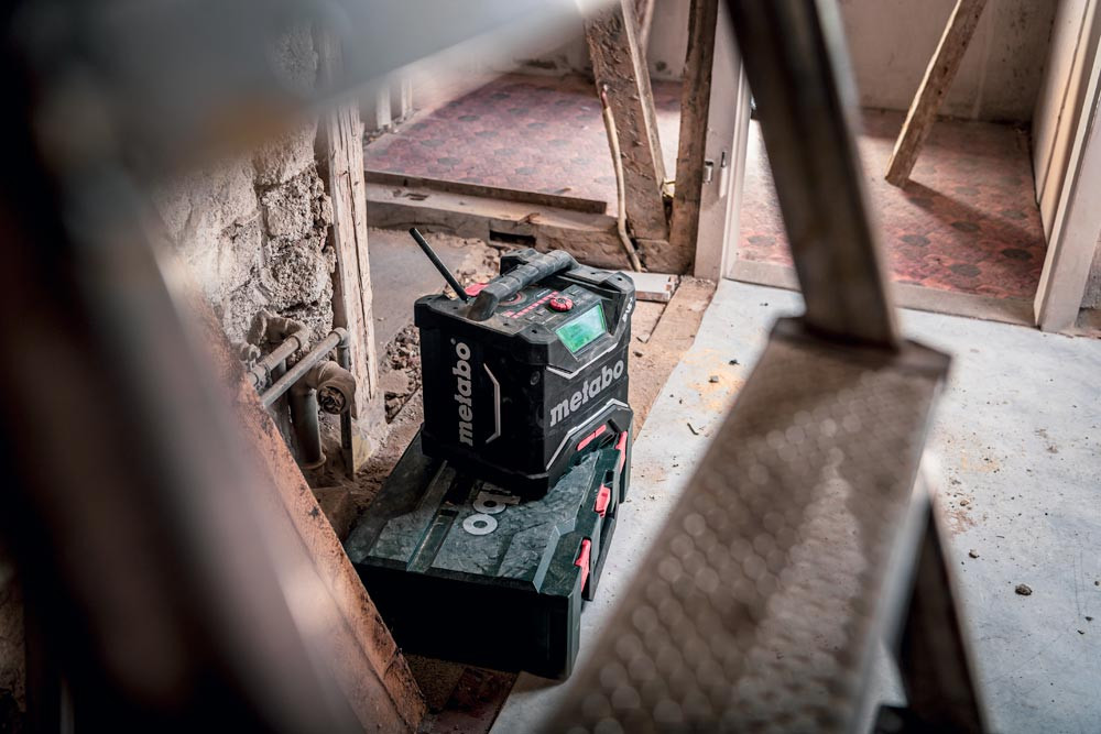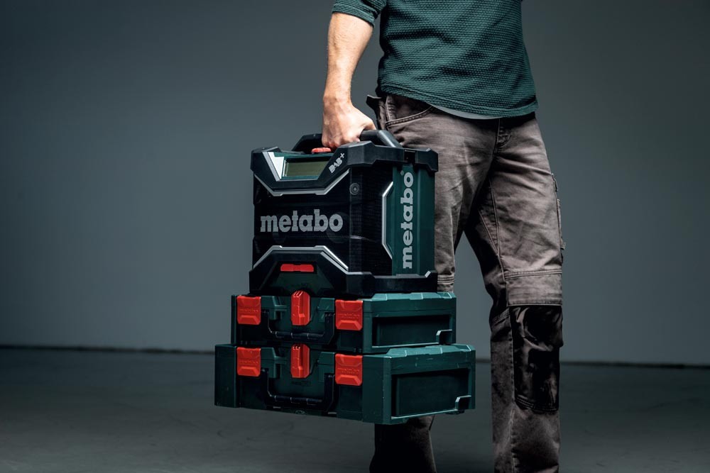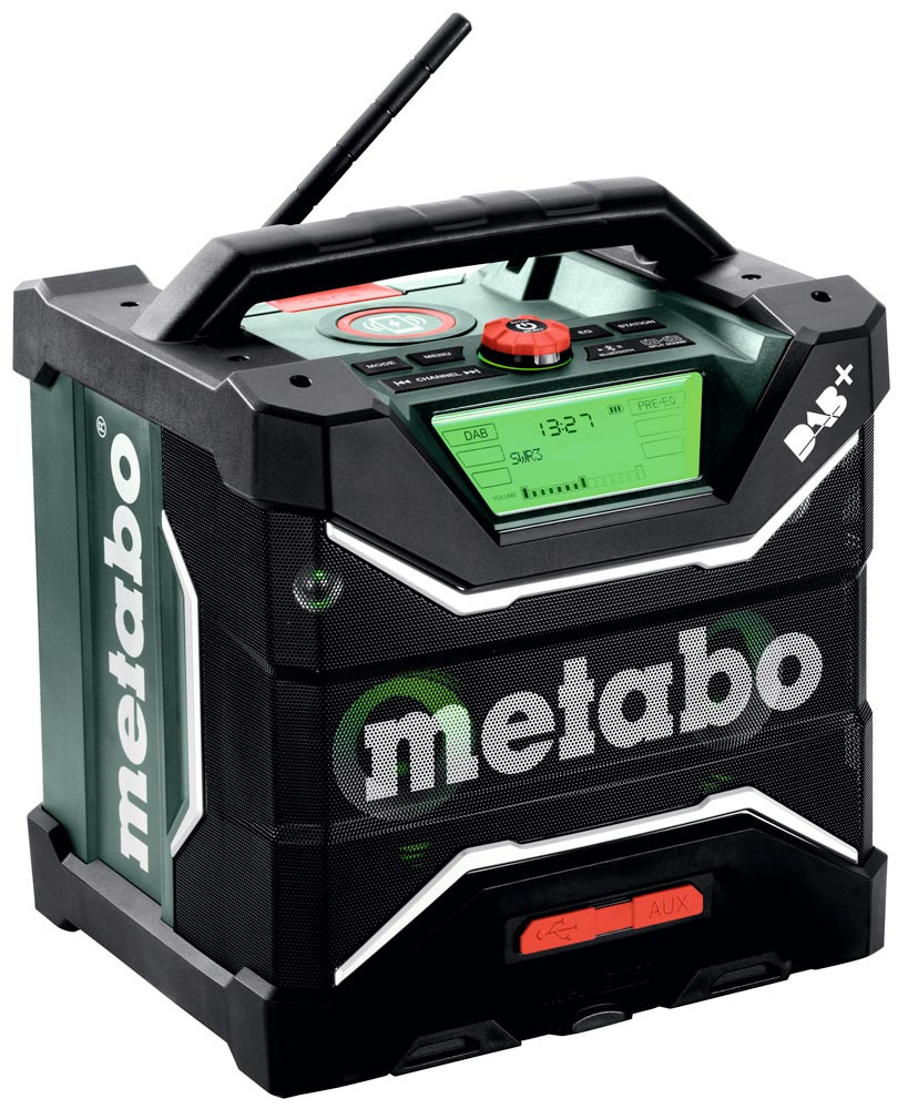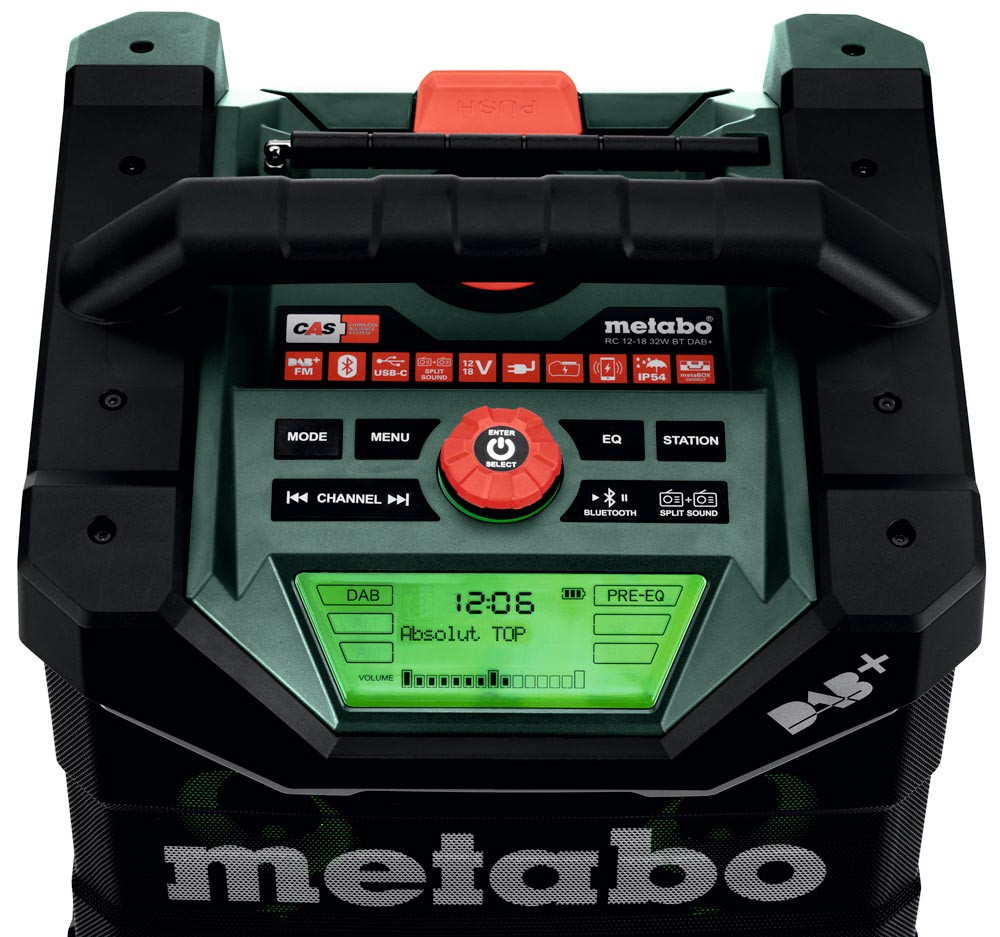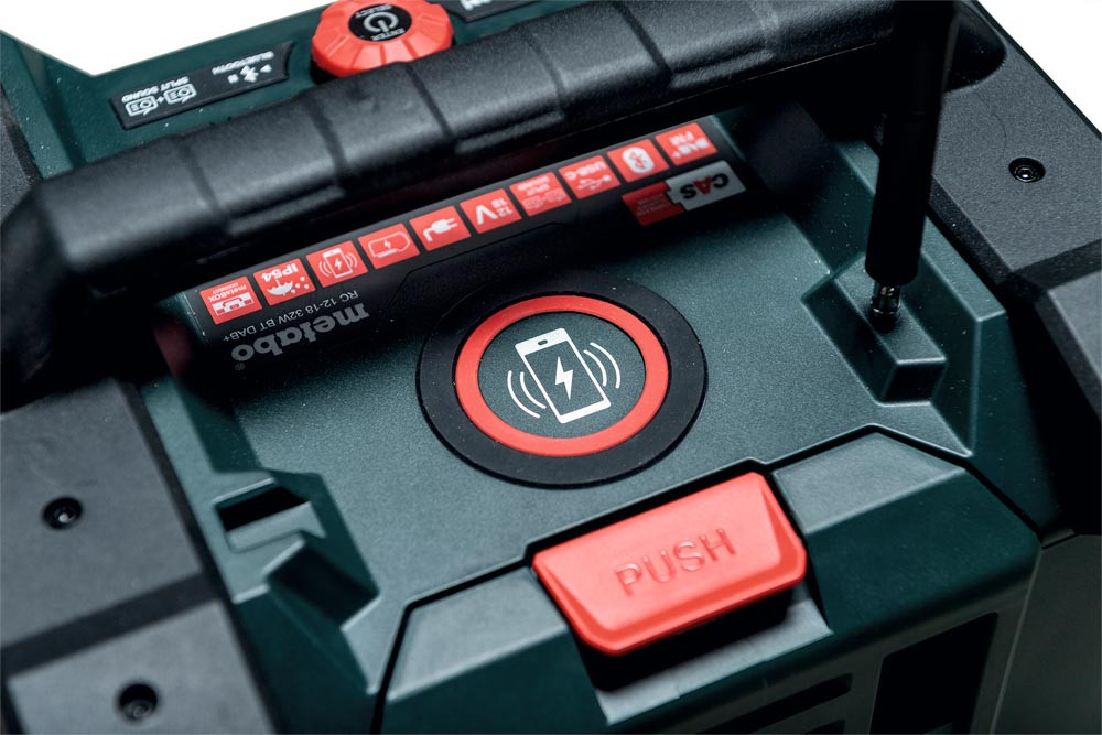 Ausführung: Leistungsstarkes DAB+ Baustellenradio mit sattem Sound und integrierter Ladefunktion für Akkupacks und Smartphones ∙ Ladefunktion für Akkupacks im Netzbetrieb und für mobile Endgeräte mit USB-C-Kabel oder kabelloses Induktionsladen ∙ SplitSound: für ein erweitertes Sound-Volumen kann der Lautsprecher eines zweiten Radios synchron zugeschaltet werden ∙ Viele Sender dank DAB+ Radioempfang, zusätzlich analoger ∙ UKW (FM) Empfang - jeweils 8 Speicherplätze ∙ Mit Bluetooth zum drahtlosen Musikhören von Smartphone oder Tablet ∙ AUX-IN zum Anschluss von kabelgebundenen Musikquellen ∙ Betrieb mit allen Metabo Schiebesitz-Akkupacks von 12 bis 18 Volt oder Netzbetrieb möglich ∙ Robustes Kunststoffgehäuse mit Schutzklasse IP 54 - spritzwassergeschützt, staubfest, stoßfest ∙ Stapel- und koppelbar auf jeder metaBOX ∙ Integrierter Flaschenöffner für den durstigen Radiohörer
