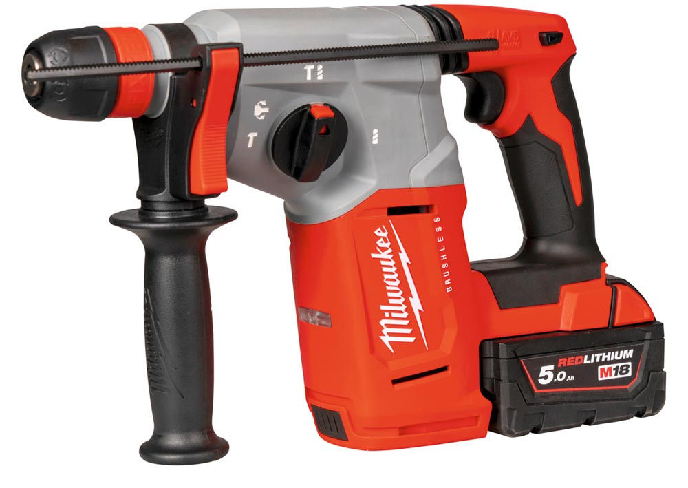 Leistungsstarker Akku-Kombihammer mit bürstenlosen POWERSTATE™ Motor ∙ REDLINK PLUS™ Elektronik ∙ FIXTEC™-Werkzeugschnellwechselsystem ∙ Robustes Metallgetriebegehäuse ∙ Anti-Vibrations-Seitengriff für geringere Vibrationsbelastung ∙ 4 Betriebsarten: Bohren, Hammerbohren, Meißeln und wählbare Arbeitsposition des Meißels (Variolock) für maximale Vielseitigkeit