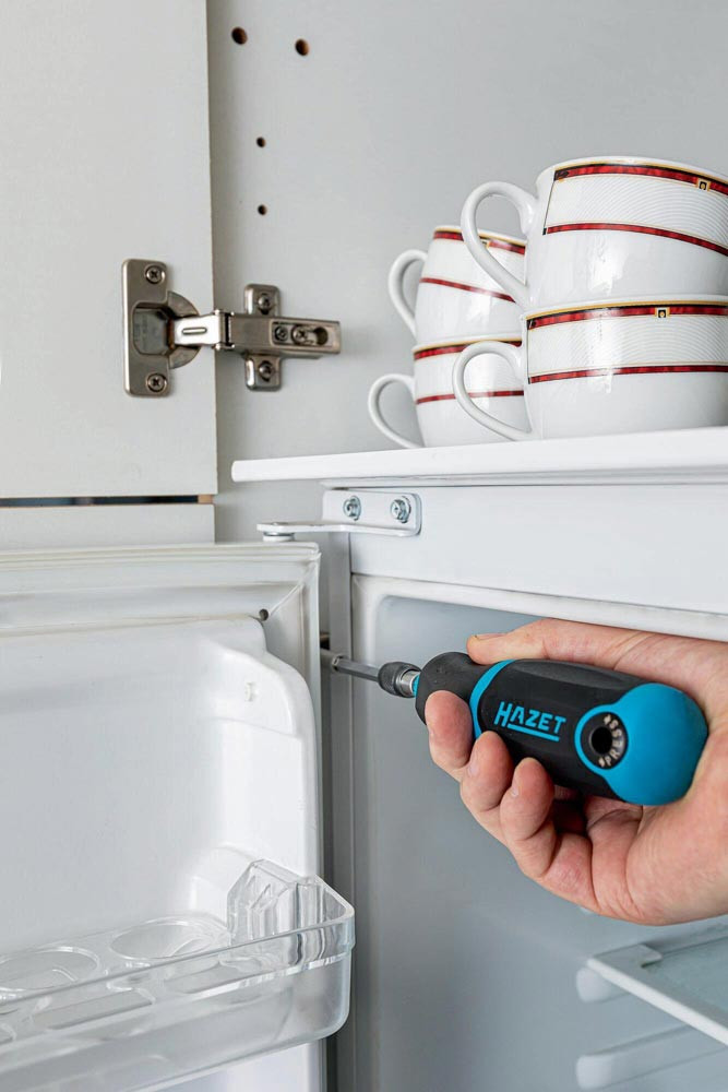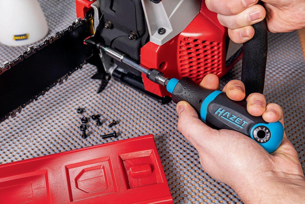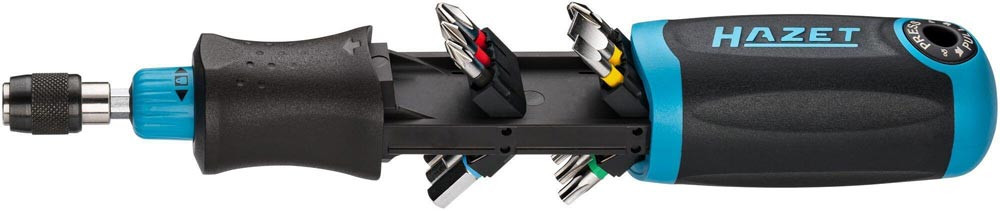 kompakter Bit-Schraubendreher mit Knarrenfunktion und integriertem Magazin · Bits farbcodiert · umstellbar links - fest - rechts · magnetische Bitaufnahme · geeignet für Bits 6,3 mm (1/4″) C 6,3