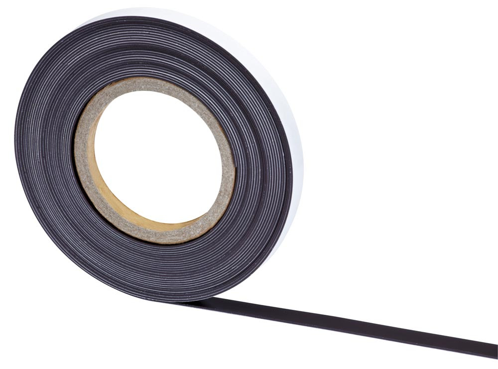 Magnetband, Rolle 10 m lang, 15 mm breit, 1 Seite selbstklebend, 1 Seite magnetisch