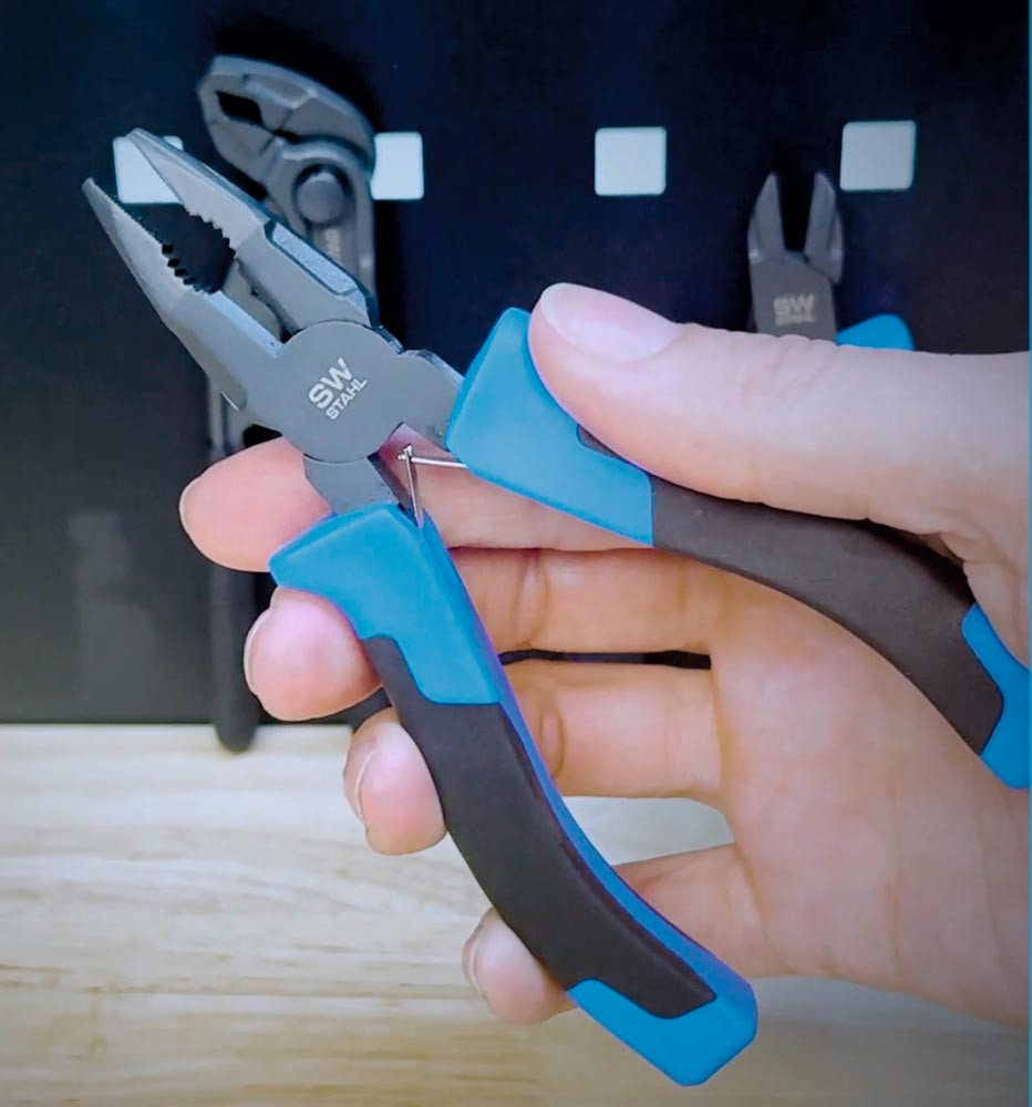 Praktisches Mini-Zangen-Set bestehend aus Kombizange (130 mm), Seitenschneider (110 mm) und Wasserpumpenzange (125 mm) ∙ Aus Chrom-Vanadium-Stahl und mit korrosionsbeständiger "Teflon Finish"-Oberfläche ∙ Greifzähne und Schneiden induktiv gehärtet ∙ Kombizange und Seitenschneider mit optimaler Hebelübersetzung für einfaches und ermüdungsfreies Arbeiten ∙ Wasserpumpenzange mit durchgestecktem Gelenk und Druckknopfverstellung