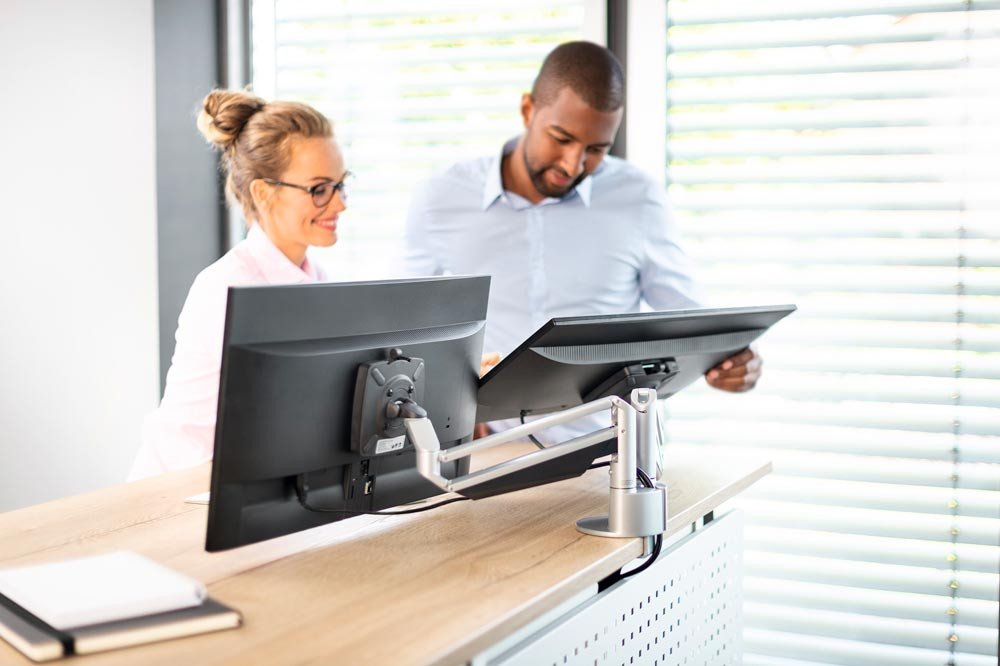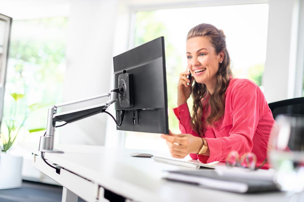 Monitortragarm, 1-teilig, Aluminium mit Gasfederunterstützung, 3-in-1 Befestigung, Aktionsradius 283 mm, TG 7 kg, weiß EP558913
