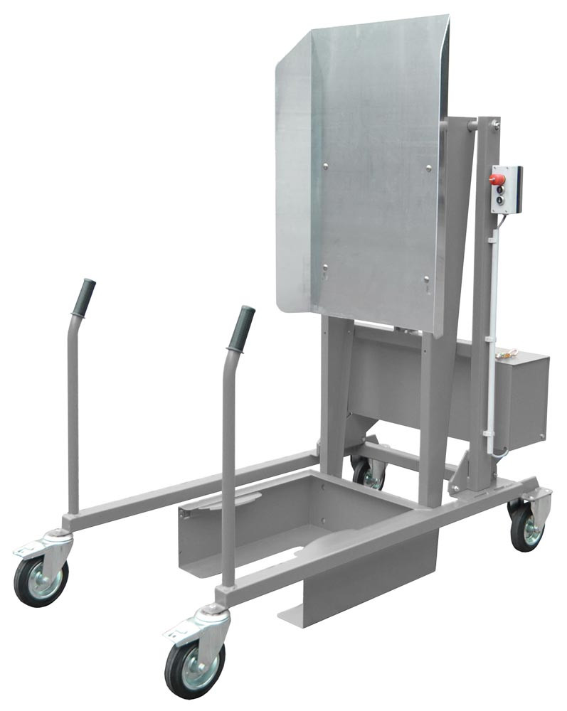 Mülltonnen-Kippstation, elektrohydraulisch, 12 V, ohne Ladegerät, LxBxH 1570x880x1720 mm, RAL 7005 mausgrau