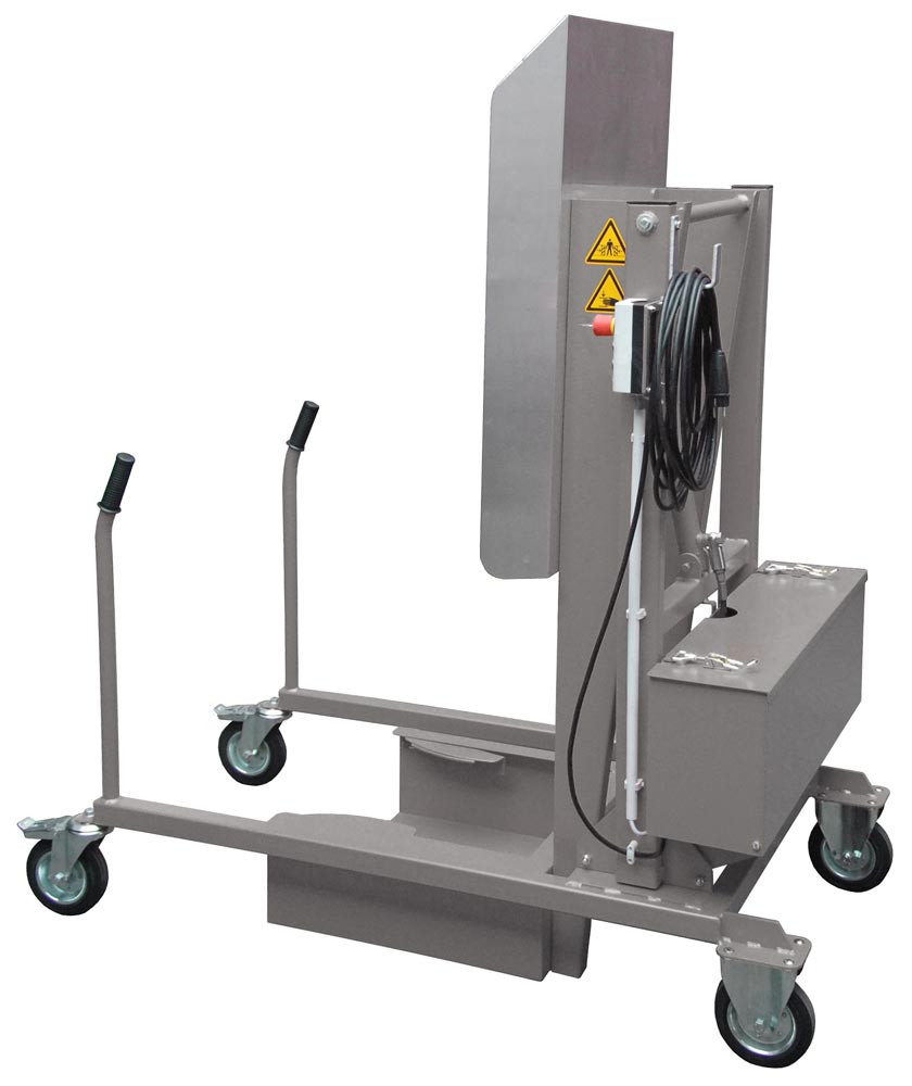 · Zur Entleerung und Reinigung von 120- und 240 Liter Mülltonnen · Kippwinkel bis 135° · Ausschütthöhe ca. 1480 mm · 2 Lenk- und 2 Bockrollen aus Vollgummi, Ø 180 mm, Lenkrollen mit Feststeller, Bauhöhe 225 mm · Traglast 110 kg