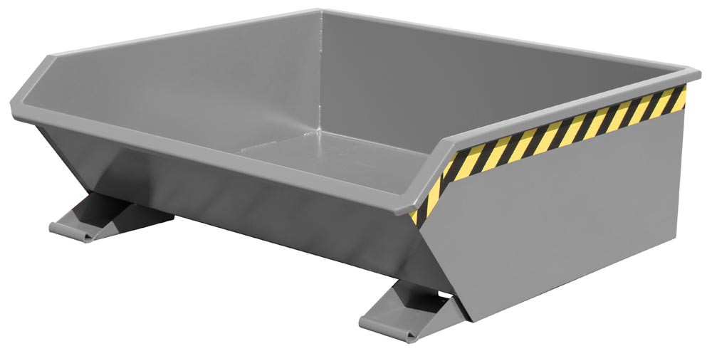 · Extrem niedrige Schüttkantenhöhe von 350 mm ∙ Mit kippbarer Mulde, 3 mm Wannenblech mit umlaufendem Randprofil ∙ Günstiger Kippwinkel, Kippen in jeder Höhe per Seilzug ∙ Sicherung gegen unbeabsichtigtes Abrutschen und Auskippen ∙ Robuste Stahlblechkonstruktion ∙ Stabiler Grundrahmen mit Einfahrtaschen · Ideal für den Einsatz unter Maschinen