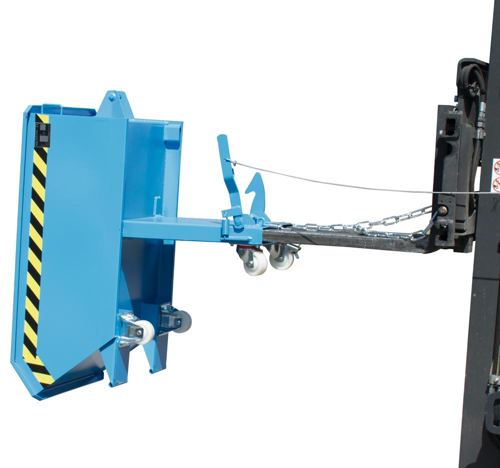 · Extrem niedrige Schüttkantenhöhe von 350 mm ∙ Mit kippbarer Mulde, 3 mm Wannenblech mit umlaufendem Randprofil ∙ Günstiger Kippwinkel, Kippen in jeder Höhe per Seilzug ∙ Sicherung gegen unbeabsichtigtes Abrutschen und Auskippen ∙ Robuste Stahlblechkonstruktion ∙ Stabiler Grundrahmen mit Einfahrtaschen · Ideal für den Einsatz unter Maschinen