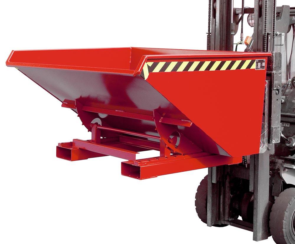 ∙ Mit Abrollsystem ∙ Mit kippbarer Mulde, 3 mm Wannenblech mit umlaufendem Randprofil ∙ Günstiger Lastschwerpunkt, Kippen in jeder Höhe per Seilzug ∙ Sicherung gegen unbeabsichtigtes Abrutschen und Auskippen ∙ Robuste Stahlblechkonstruktion ∙ Stabiler Grundrahmen mit Einfahrtaschen