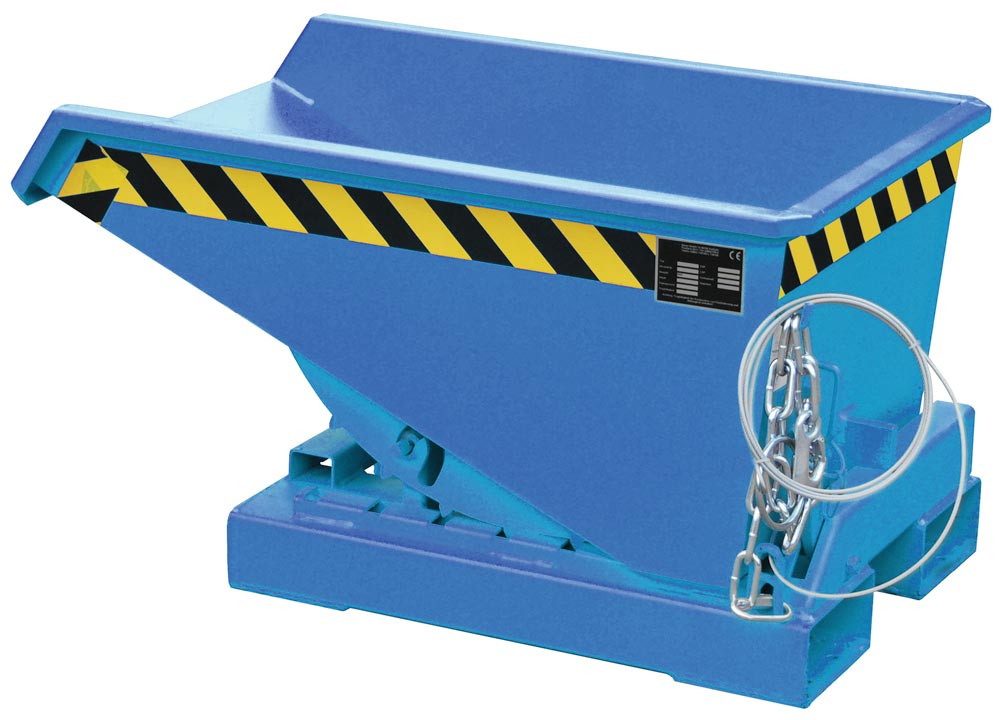 Mulden-Selbstkipper mit Abrollsystem, umlaufender Rand, LxBxH 960x640x540 mm, Vol. 0,15 cbm, Traglast 750 kg, lackiert RAL 5012 lichtblau