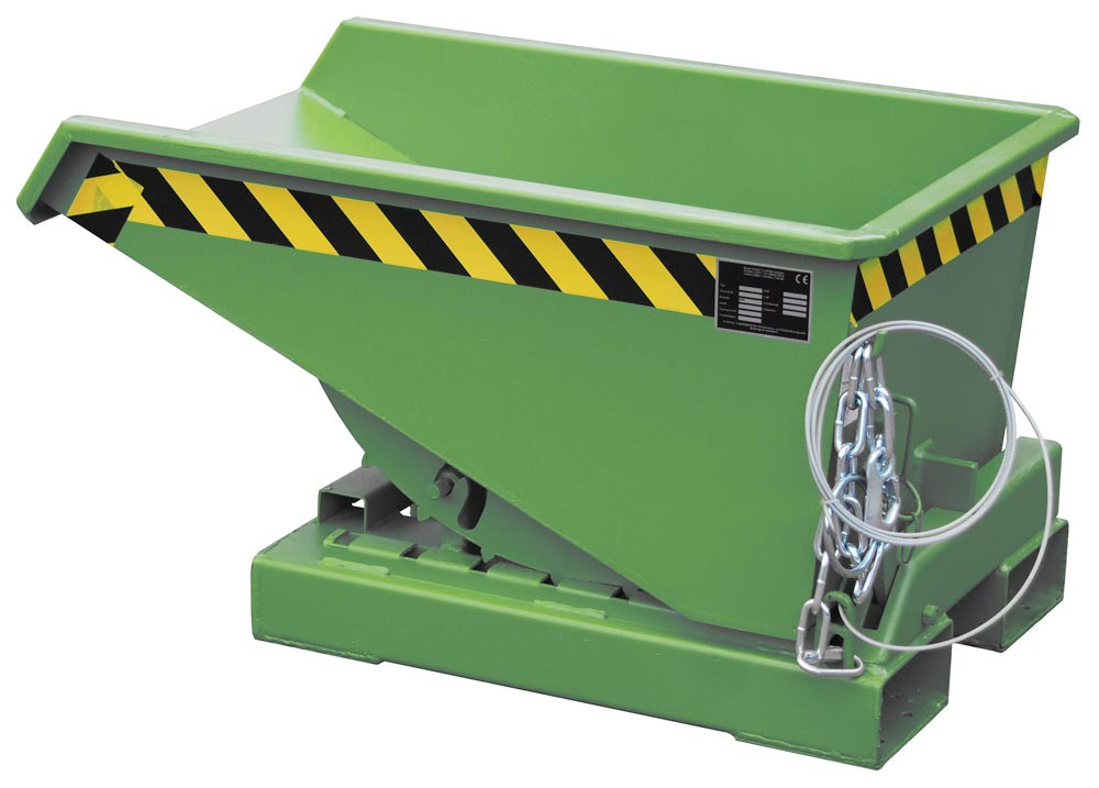 Mulden-Selbstkipper mit Abrollsystem, umlaufender Rand, LxBxH 960x640x540 mm, Vol. 0,15 cbm, Traglast 750 kg, lackiert RAL 6011 resedagrün