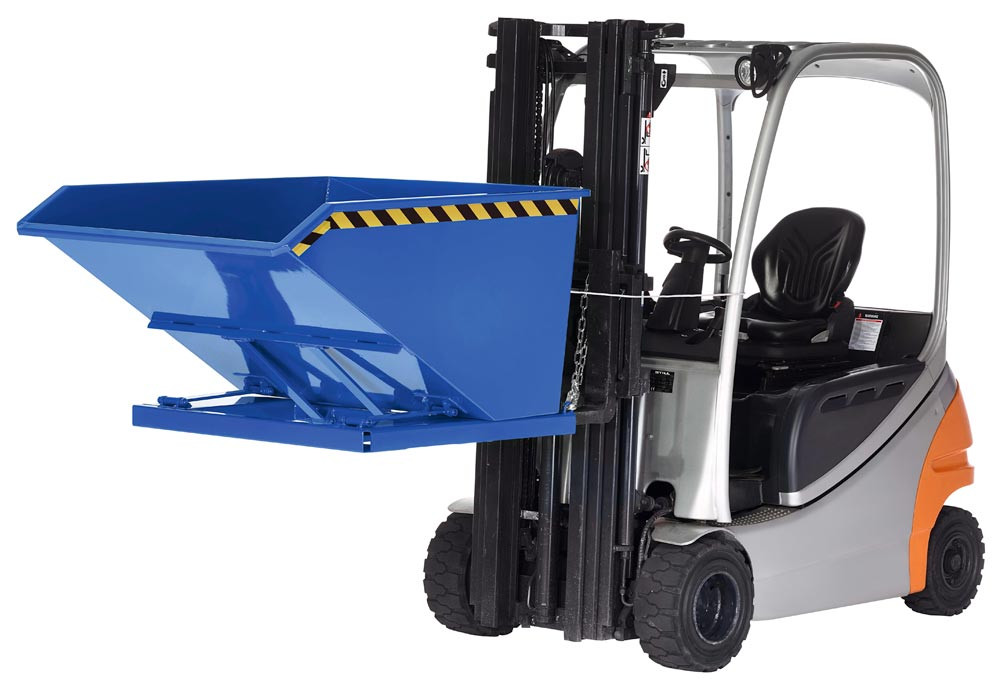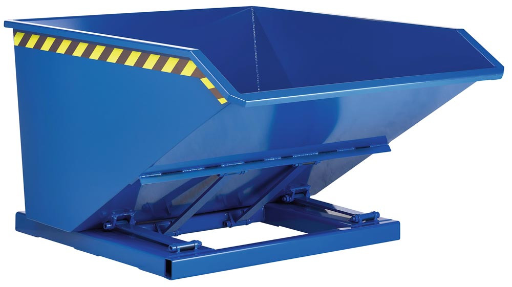 Muldenkippbehälter, Scherenmechanik, Volumen 1,0 cbm, Traglast 1200 kg, LxBxH 1450x1580x780 mm, RAL 5010 enzianblau