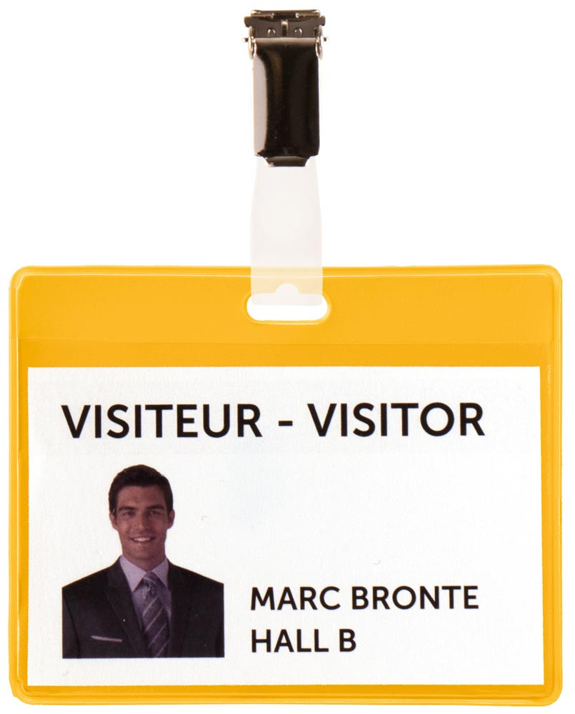 Namensschild, PVC, LxB 82,5x103 mm, quer, gelb, mit Befestigungsclip, VE 75 Stück EP551914