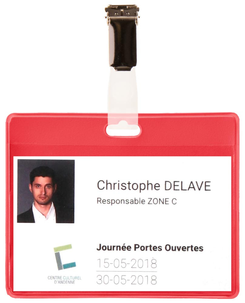 Namensschild, PVC, LxB 82,5x103 mm, quer, rot, mit Befestigungsclip, VE 75 Stück EP551913