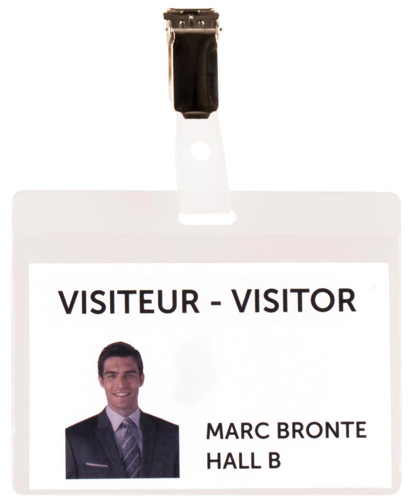 Namensschild, PVC, LxB 82,5x103 mm, quer, transparent, mit Befestigungsclip, VE 75 Stück