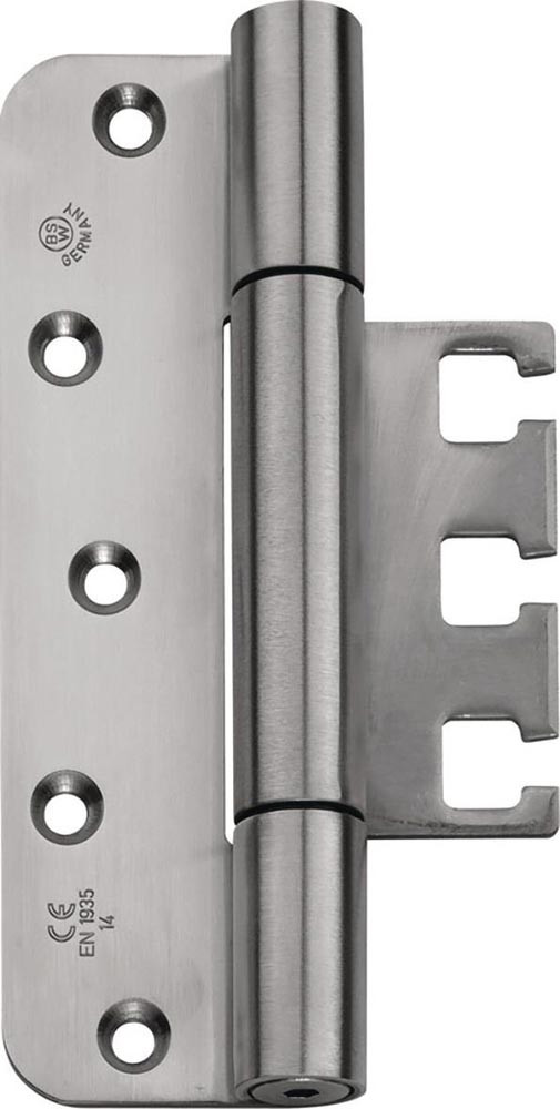 für stumpf einliegende Türen, für alle 3D-Zargenkonstruktionen VZX (VX), verdeckt liegende, axiale und radiale wartungsfreie Gleitlagerung, DIN links und rechts verwendbar durch verschraubte Bandachse mit Verdrehsicherung
