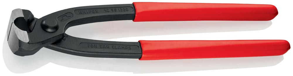 Ohrklemmenzange Gesamtlänge 220 mm Kopf schwarz atramentiert Kunststoff-Überzug seitliche Pressnase E6438775