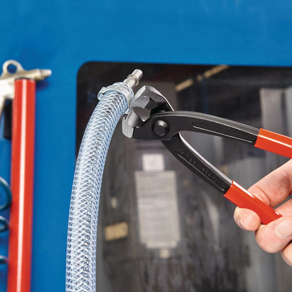 zum einfachen und zuverlässigen Befestigen von 1-Ohr- und 2-Ohrklemmen (System Oetiker oder ähnlich) · vielfältig einsetzbar für Klemmen an Achsmanschetten, Kühler- und Kraftstoffleitungen, Luftdrucksystemen, Kompressoren · Spezial-Werkzeugstahl in Sondergüte, geschmiedet, ölgehärtet