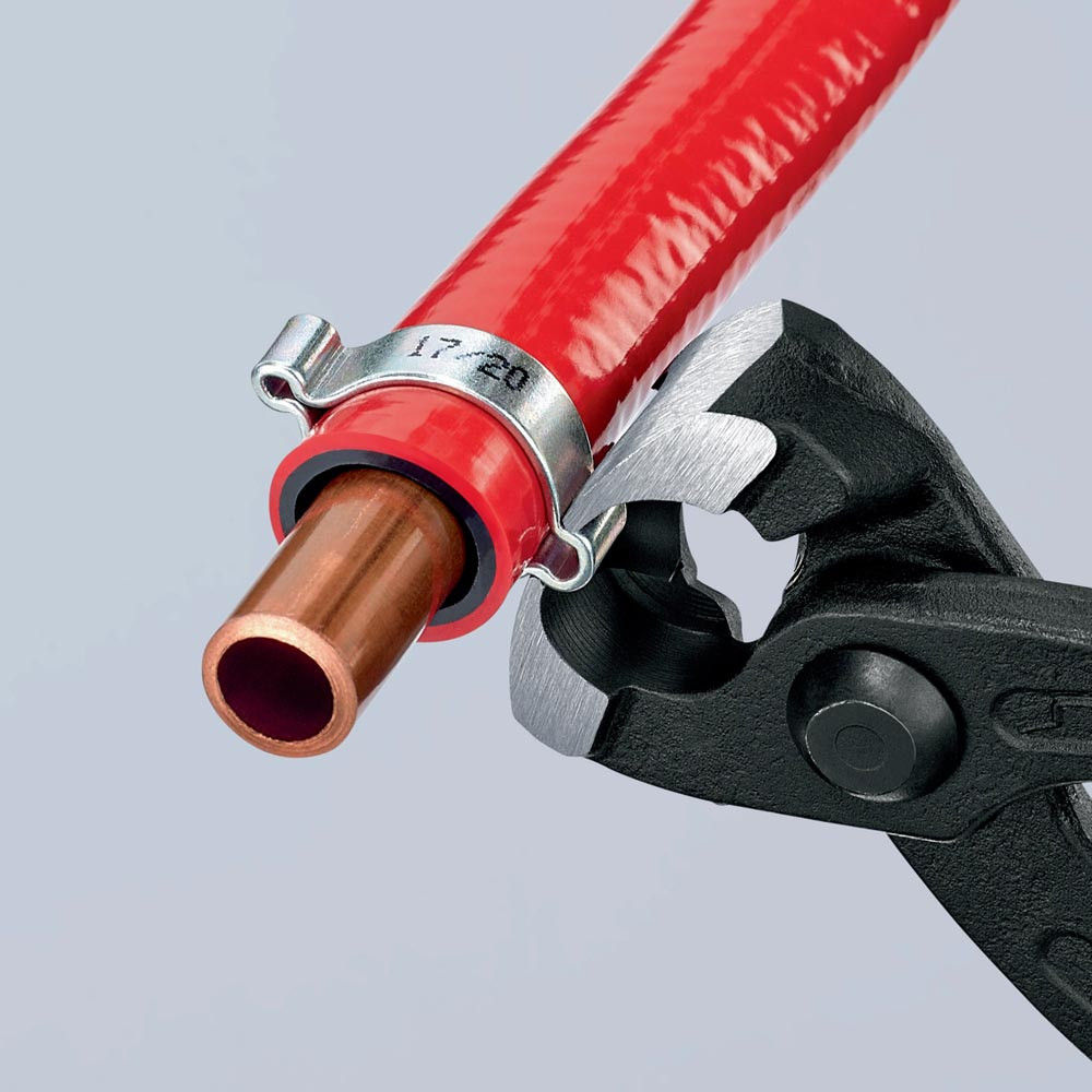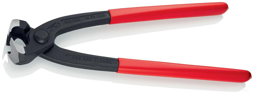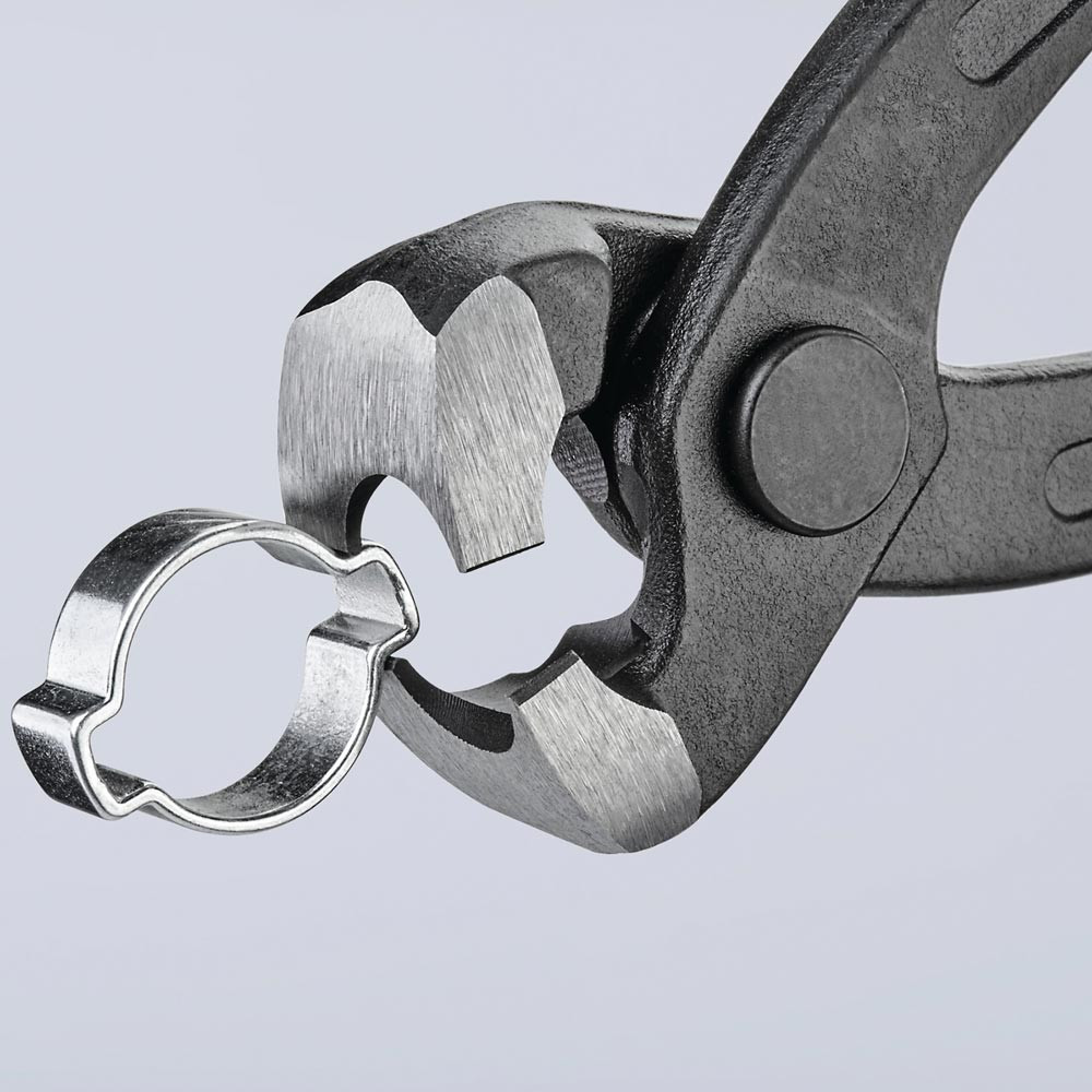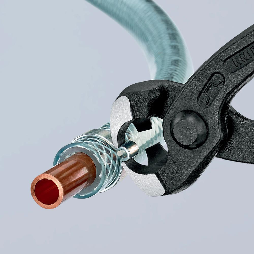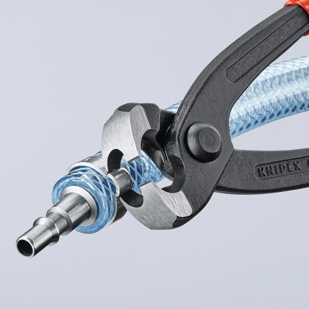 zum einfachen und zuverlässigen Befestigen von 1-Ohr- und 2-Ohrklemmen (System Oetiker oder ähnlich) · vielfältig einsetzbar für Klemmen an Achsmanschetten, Kühler- und Kraftstoffleitungen, Luftdrucksystemen, Kompressoren · Spezial-Werkzeugstahl in Sondergüte, geschmiedet, ölgehärtet · mit seitlicher Pressnase