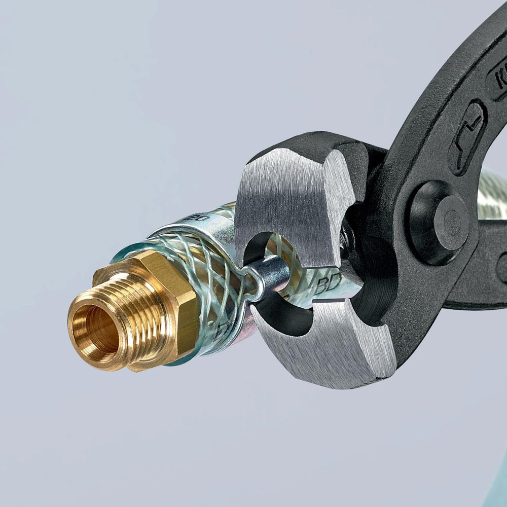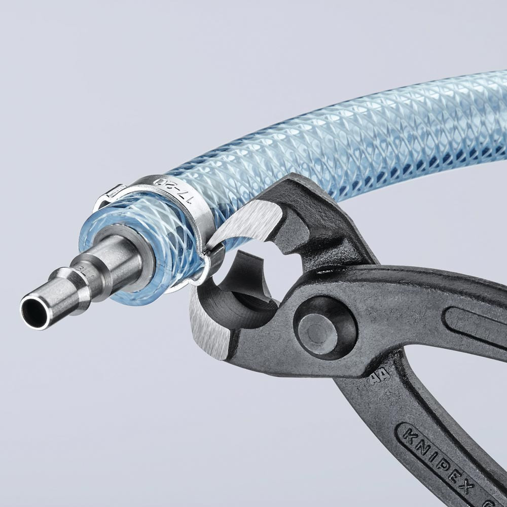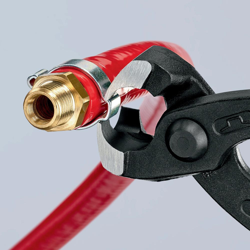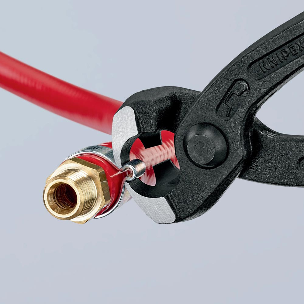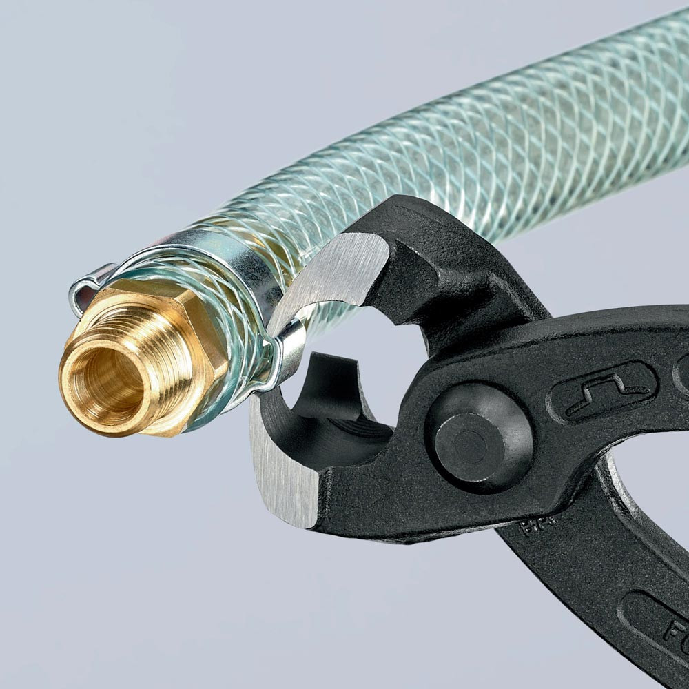 zum einfachen und zuverlässigen Befestigen von 1-Ohr- und 2-Ohrklemmen (System Oetiker oder ähnlich) · vielfältig einsetzbar für Klemmen an Achsmanschetten, Kühler- und Kraftstoffleitungen, Luftdrucksystemen, Kompressoren · Spezial-Werkzeugstahl in Sondergüte, geschmiedet, ölgehärtet · mit seitlicher Pressnase