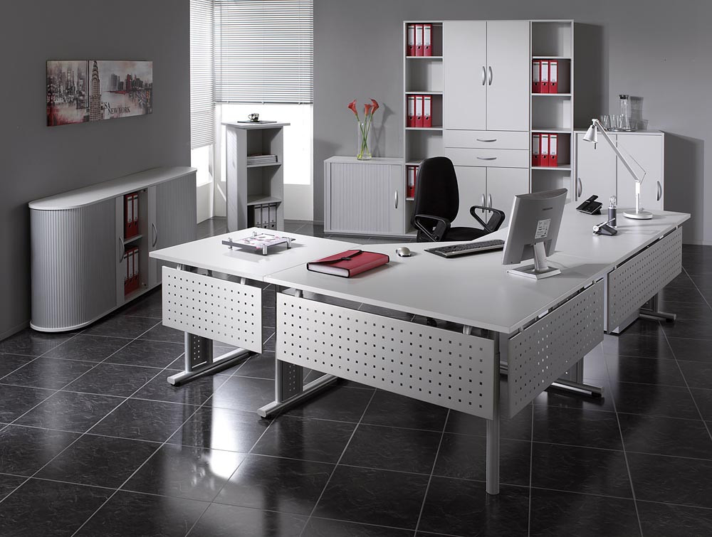 PC-Schreibtisch, BxTxH 1800x1000x680-820 mm, links 425 mm, höhenverstellbar, Platte lichtgrau, C-Fuß-Gestell silber EP531293